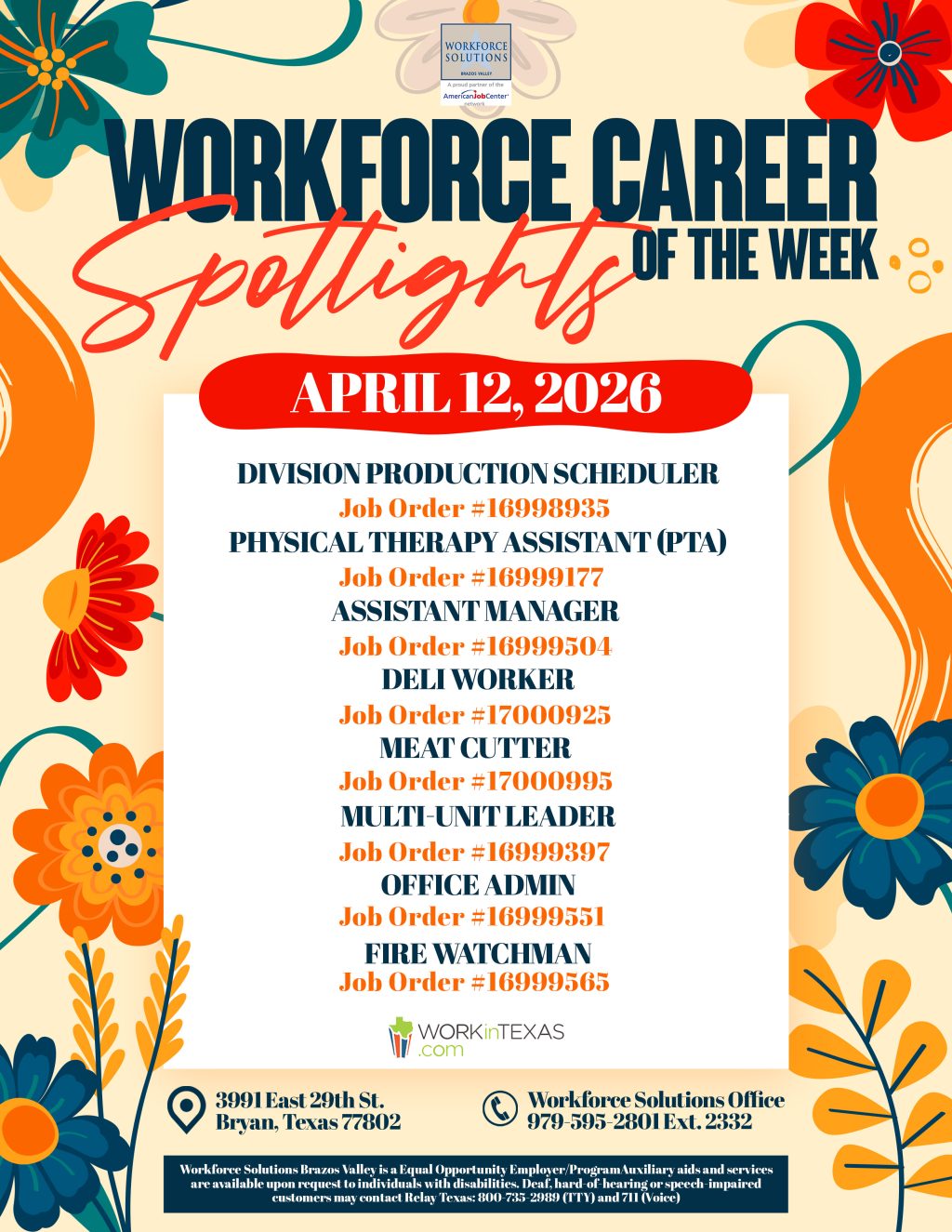 Texas Workforce Commission (TWC) Texas Conference for Employers was held on March 27, 2026, at the Hilton College Station & Conference Center. This year’s conference recognized Brazos Valley Area employers…