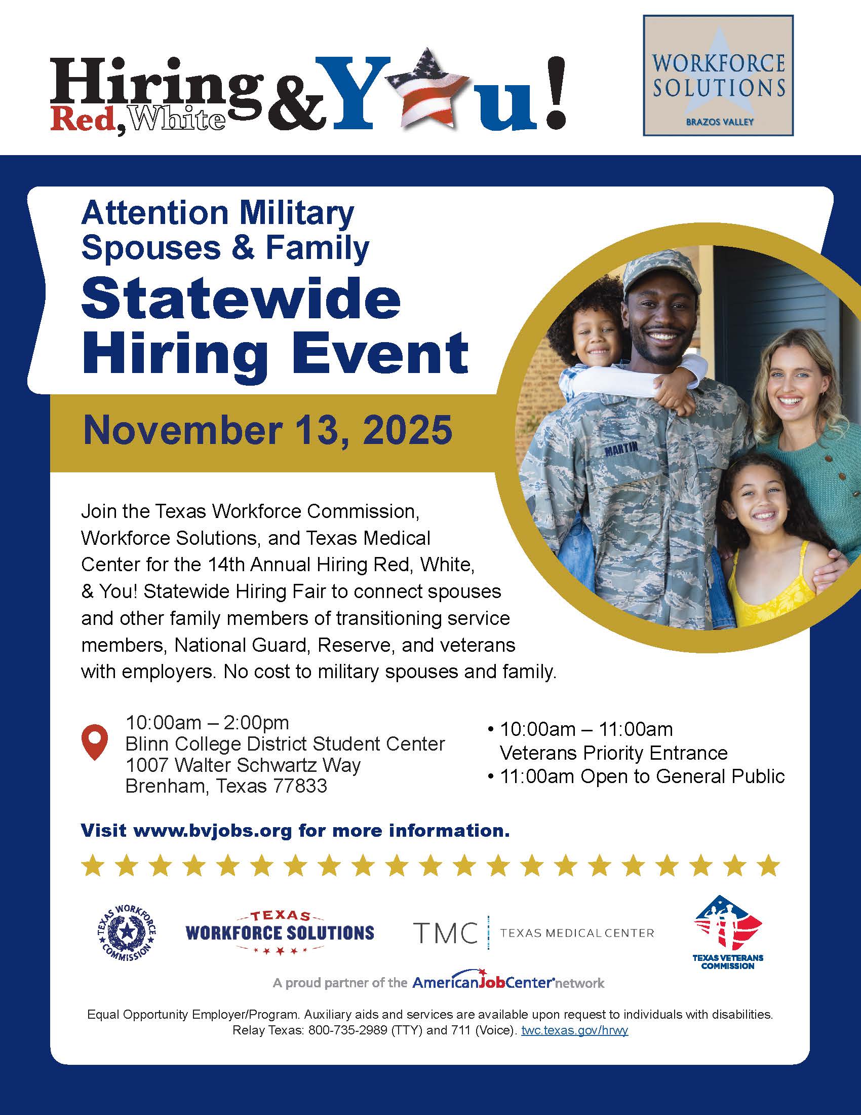Location: Blinn College District Student Center at 1007 Walter Schwartz Way, Brenham, TX 77833