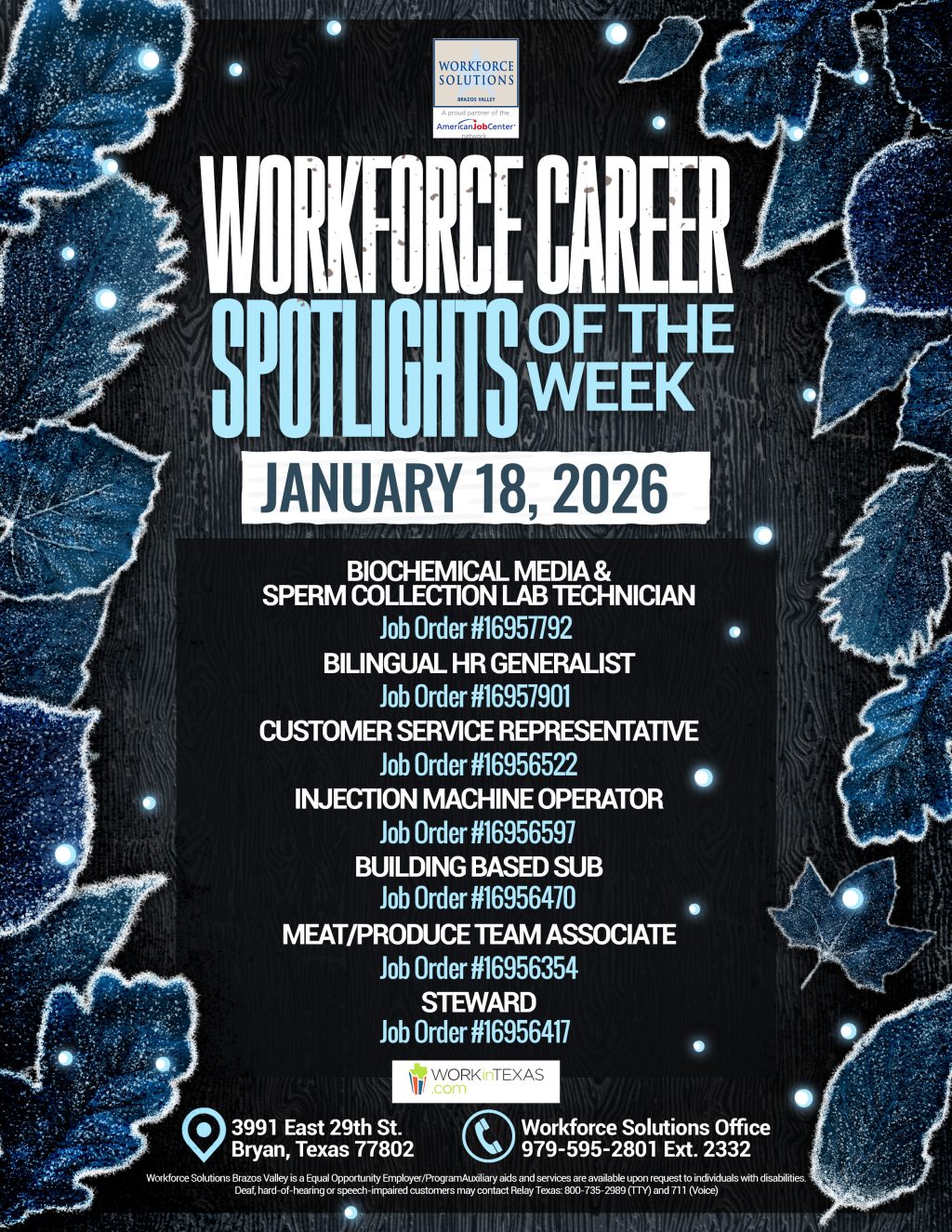 BCS Libraries is joining forces with Workforce Solutions Brazos Valley “Workforce Innovation and Opportunity Act” (WIOA) program to help job seekers access essential employment, education, training and support services to…